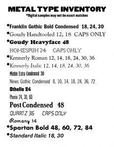 Metal Type Inventory